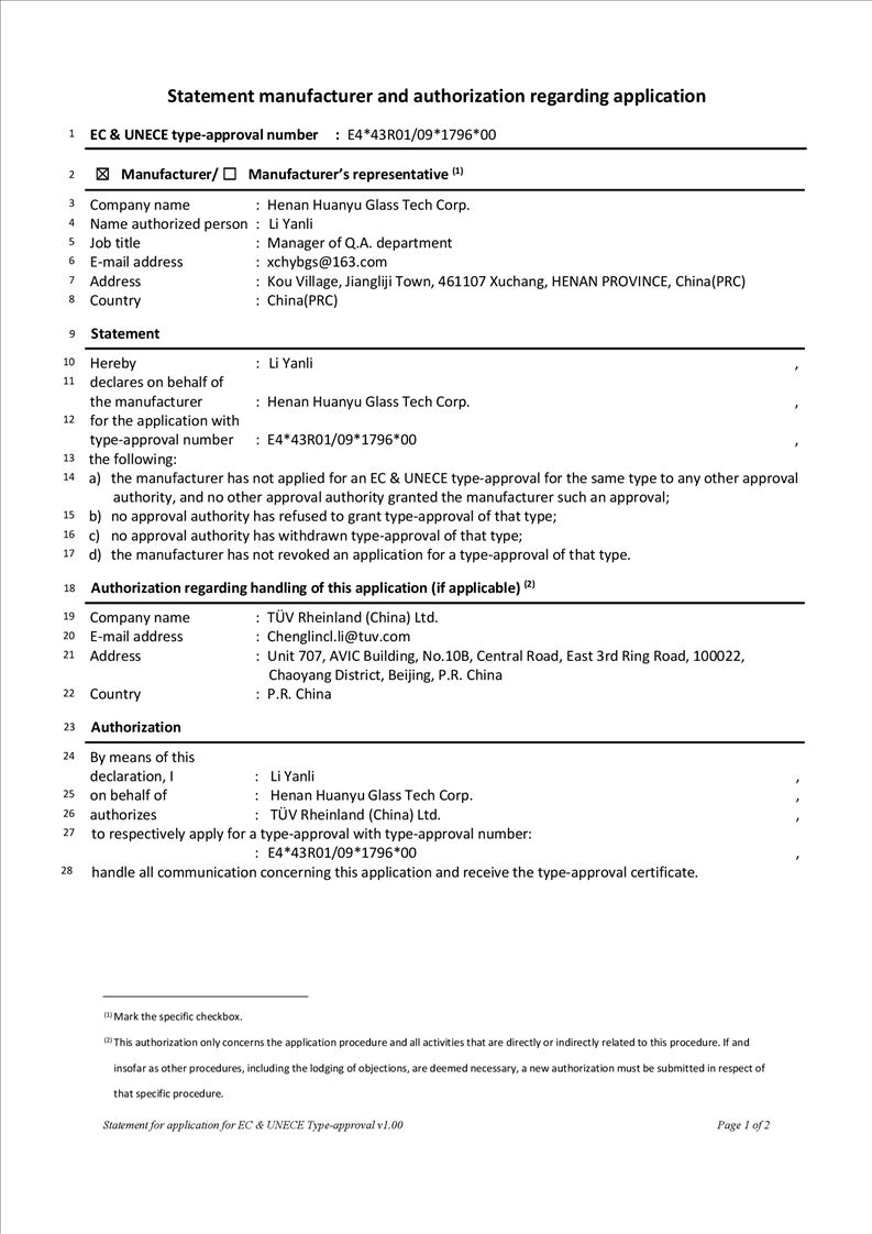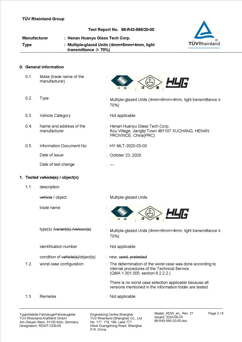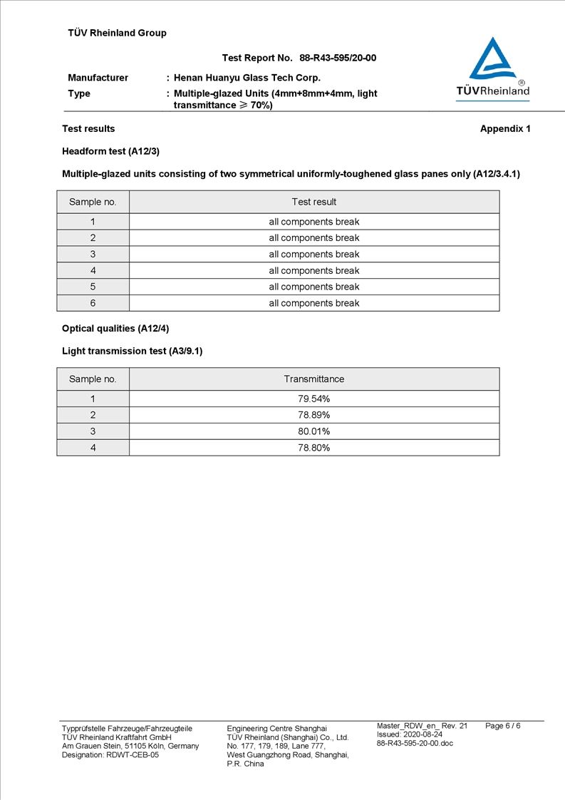 河南環(huán)宇玻璃科技股份有限公司年產(chǎn) 5 萬平方米驗收報告公示